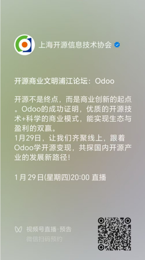 上海开源信息技术协会今天有关于Odoo的分享会,小伙伴有时间,感兴趣的可以听一听