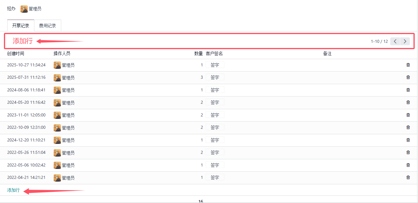 添加行”按钮默认显示在列表底部,这是 Odoo 的标准行为,无法通过 XML 直接移动到顶部